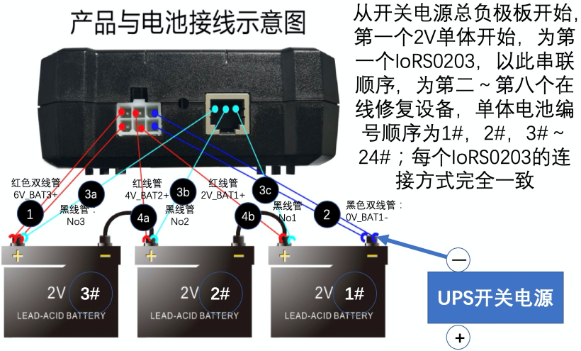 注意:本產(chǎn)品第一個(gè)IoRS-0203從電池組的總負(fù)極開始安裝,以此順序。