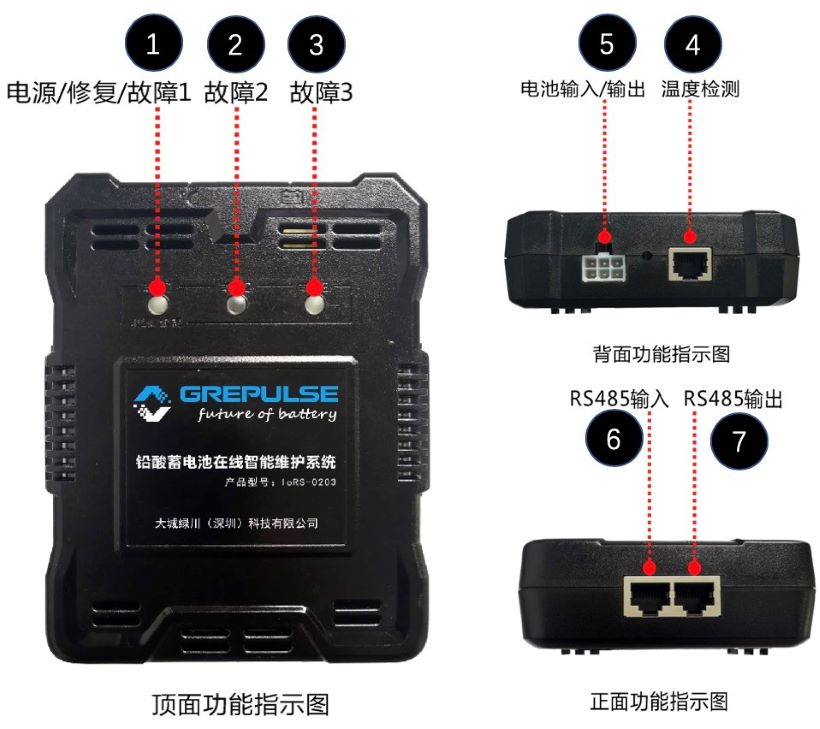 產(chǎn)品在正常工作過程中,如果檢測到蓄電池某個(gè)參數(shù)超限或硬件故障,設(shè)備上相應(yīng)的指示燈會點(diǎn)亮