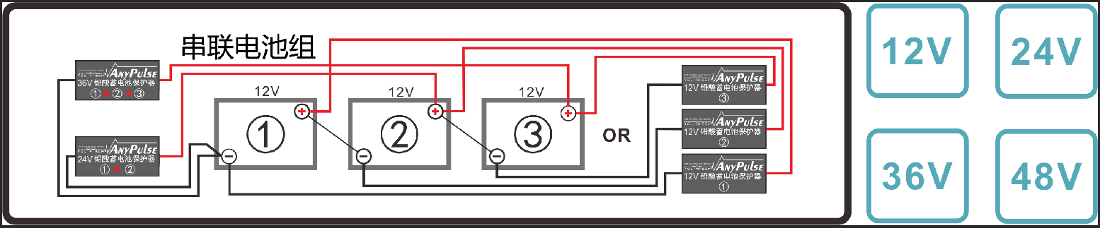 商用車及卡車類啟動電池使用的24V/36Ah~300Ah各種類型的鉛酸蓄電池均可使用。48V供電系統(tǒng)的電池設(shè)備需要每個單體24V電池安裝一個保護器BP-24。若電池容量超過300Ah, 也可以使用,但達到修復(fù)效果耗時加長。主要應(yīng)用在卡車,輪船,太陽能路燈電池,軍用車輛和UPS備用電源等。